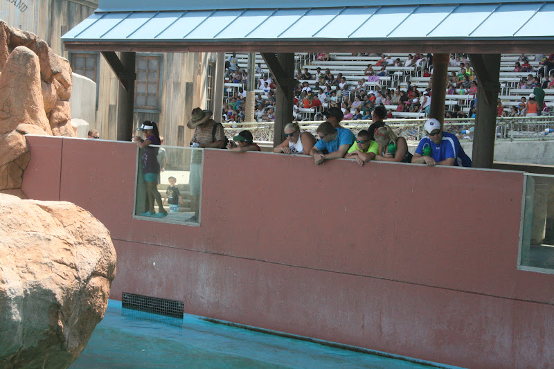 We have always loved Sea World, but we were a little disappointed this trip. The Shamu show was boring, since the trainers are no longer allowed to get in the water with the whales. They also took out the log ride which was a family favorite. The water park entrance is no longer part of a your Sea World entrance, it is 30 dollars more on top of your regular Sea World entrance, so we didn't get to cool off in the water park. Jacob and I had to wait in line for an hour just to get a hamburger for lunch, everyone else went to get pasta and pizza, but Jacob wanted a hamburger so I waited in line with him. It was absolutely ridiculous! We still had fun, but it was hot and we missed the Sea World from a few years ago! There was a funny show at the end of the day at the Sea Lion's Stadium, they spoofed all the other shows and the security guards, so glad we went to that show! We also had fun taking pictures in the gift shop's where we went to cool off!