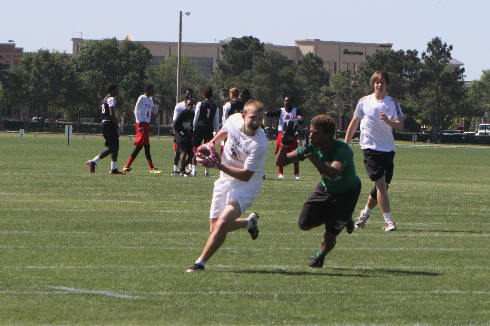 This catch is going to be for the win! Our player and the other teams player both had a hold of the ball and it got popped out right into Jacob's hands. |